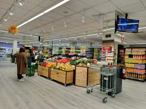Dispone de publicidad dinámica a través de pantallas Led, servicio a domicilio y compra online. Su horario es continuo de lunes a sábado.